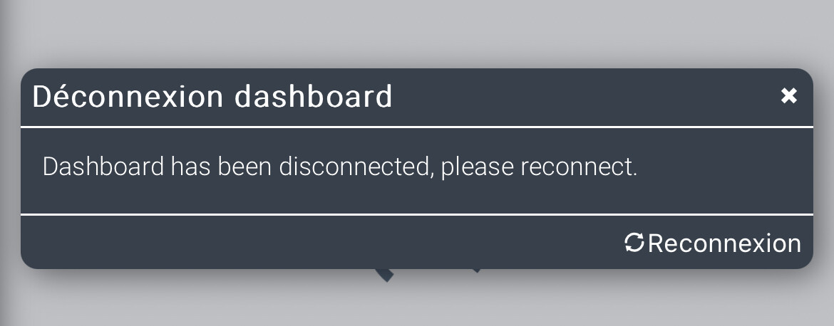 Le soucis c’est qu’il faut faire ça sur chaque page et que l’état des boutons des différents Dashboard ne s’actualise pas. Donc pour voir si un bouton a bien été activé ou désactivé il faut que je choisisse un autre Dashboard avant de revenir au précédent avec à chaque fois cette même fenêtre qui apparaît entre deux