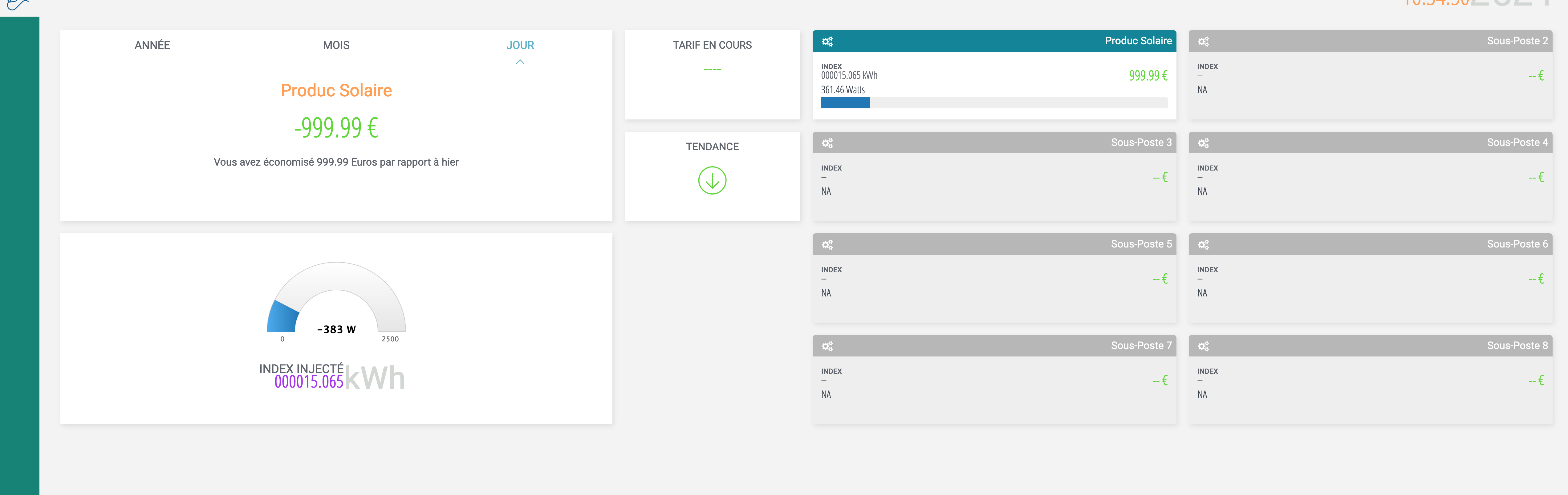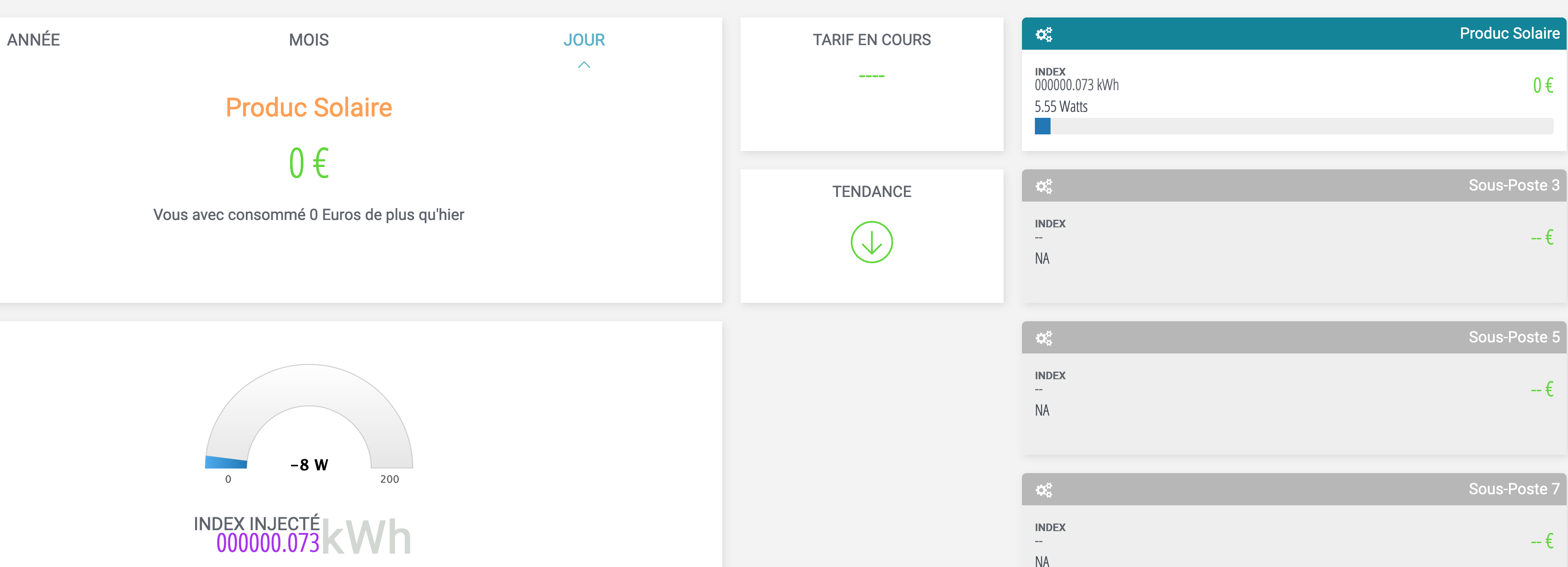 par contre qd mes panneaux ne produisent plus , ma valeur est en négative , j’ai 8 panneaux et chaque panneau consomme 1 watts donc j’ai -8 watts