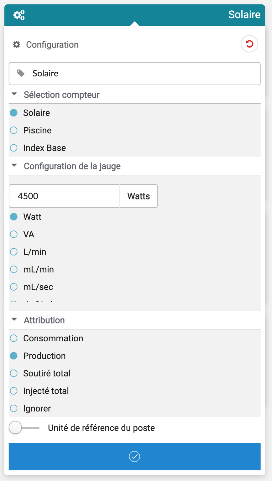 Par contre, je n’arrive pas à afficher la jauge instantanée ni pour mes panneaux, ni pour ma pisicne.