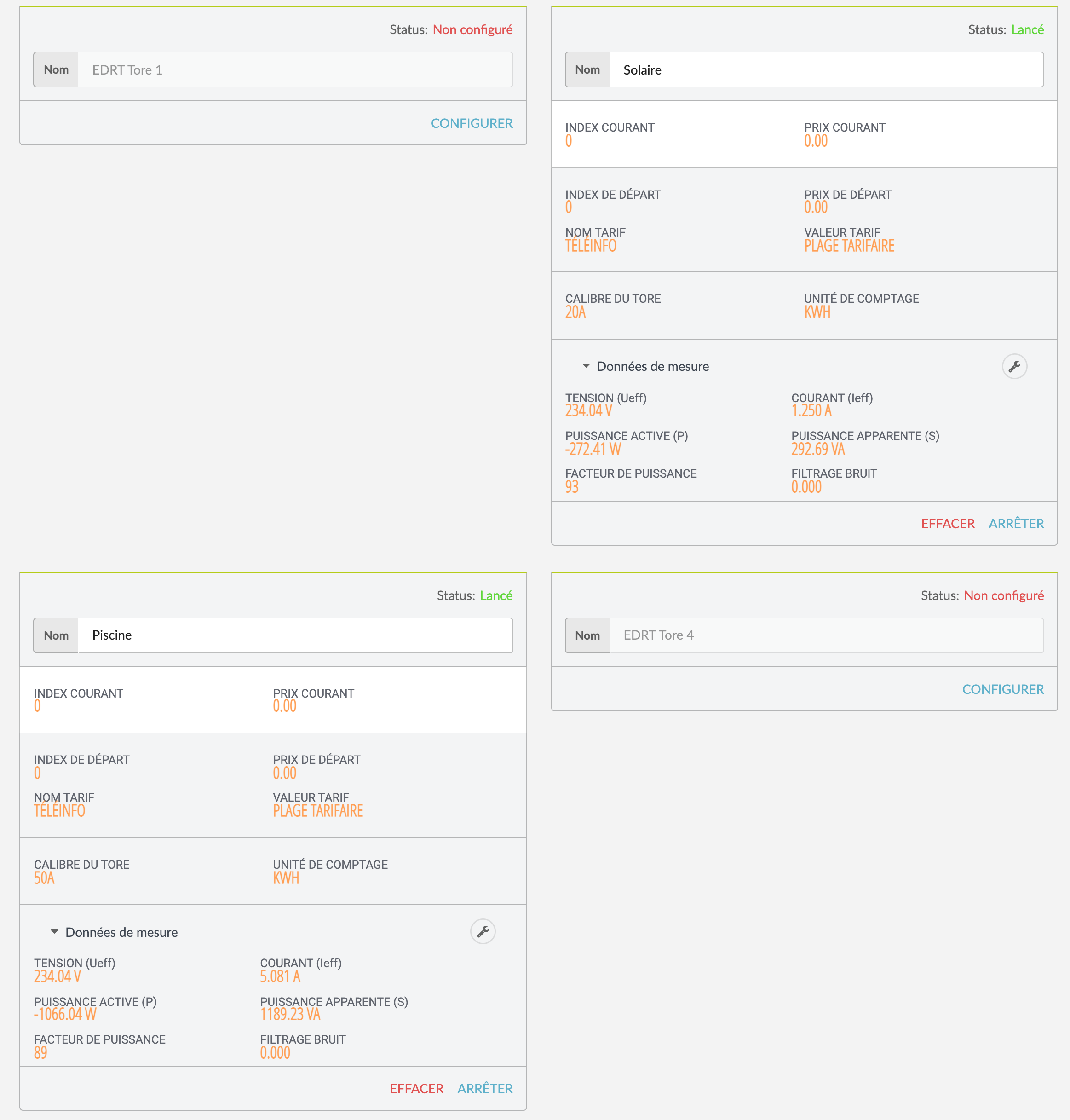 Sur la dernière version stable, j’avais 3 postes fonctionnels en mesure de la conso ou de la production (la partie tarif ne m’intéresse pas spécialement) :