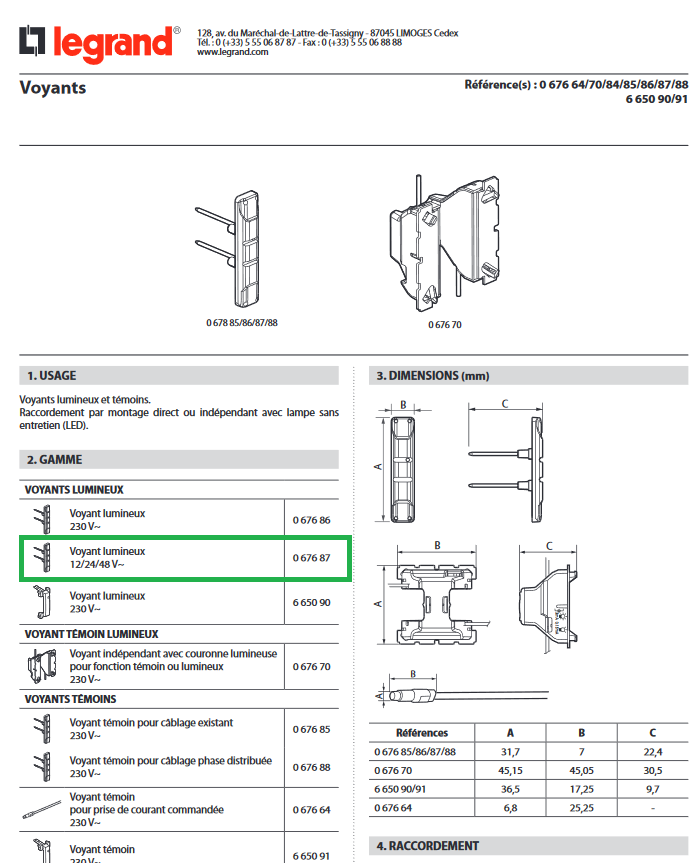 J’ai donc trouver chez legrand des poussoirs libres de potentiels ref 067034 et des voyants très basse tension 12v (donc parfait pour mon cable cat 6A).