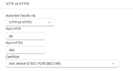 mes caméras sont définies pour fonctionner en http (:80) et https (:443) avec un certificat Axis