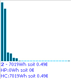 fatal25> Je joins un relevé de conso avec le chauffe-eau en mode normal, fonctionnement de 23h00 à 5h00. A 0h00 (barre de gauche) le chauffe-eau a consommé 3000Wh, à 1h00 2700Wh, puis 460, 420, 180 et enfin 170, total 1230Wh consommés pour rien… De mémoire c’est la marque Atlantic, 300 litres.