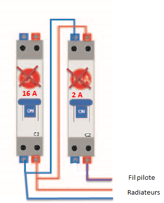 Le disjoncteur 2A du fil pilote doit être lui-même protégé par le même différentiel que les radiateurs.