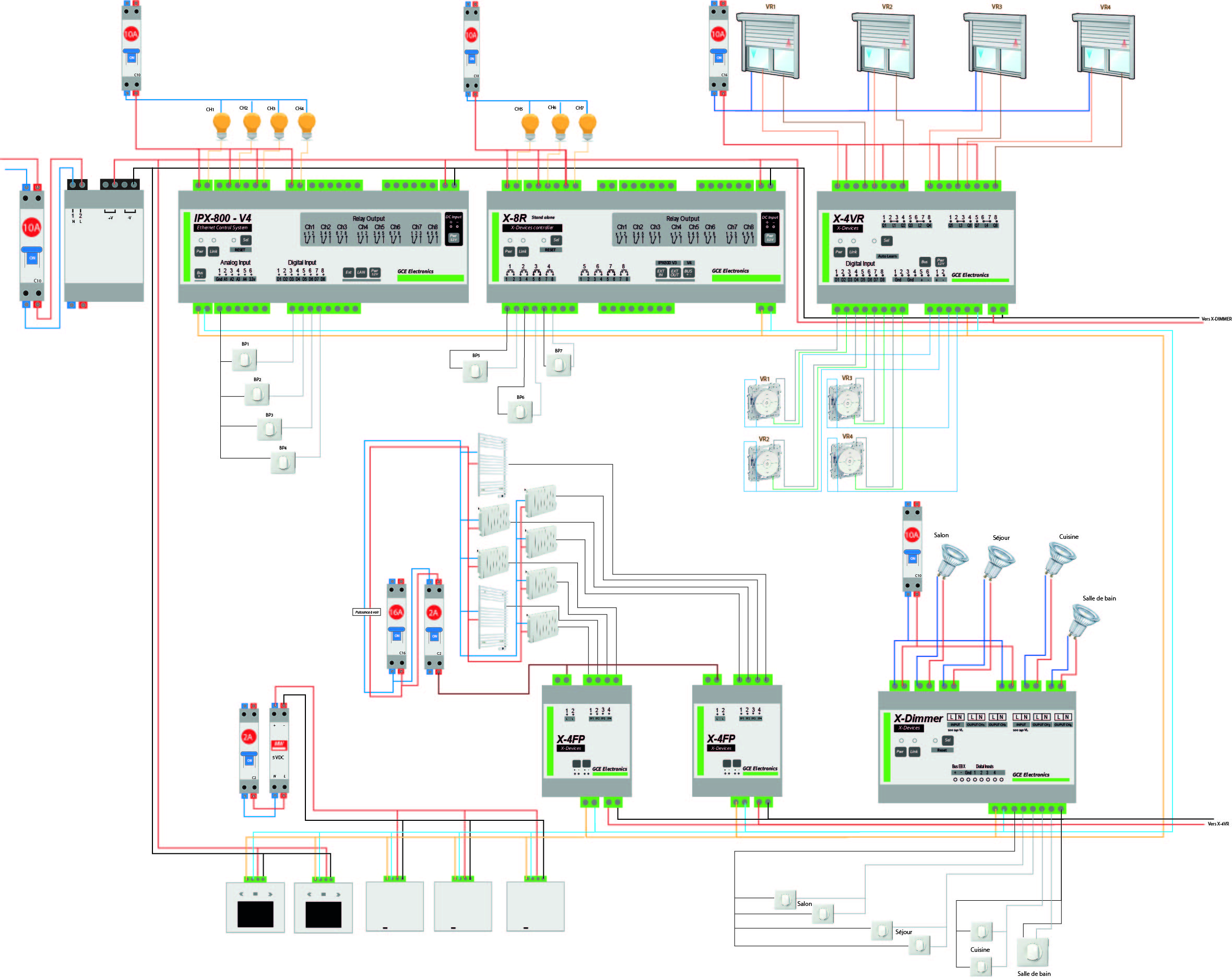 Vous pouvez mettre un seul disjoncteur pour les 4 VR. Même chose un seul disjoncteur pour les 4 canaux du X-Dimmer.