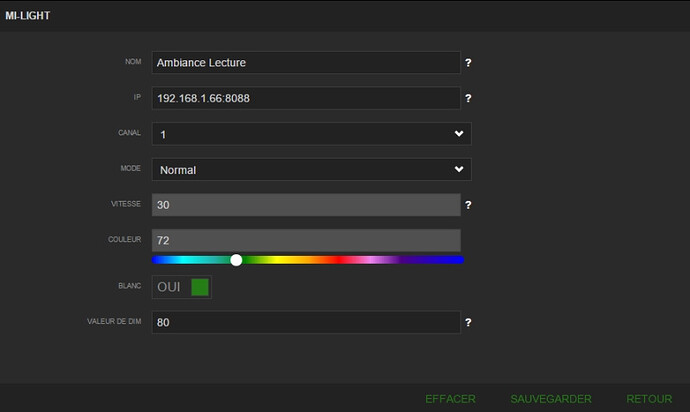 j’ai réussi a faire ça , j’ai trouver l’adresse du mi.light.
