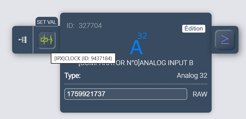 Dans le cadre de l’automatisation d’un éclairage en fonction de la tombée de la nuit, je souhaite utiliser la source “[WEATHER]Sunset day” en la comparant à la source “[IPX]CLOCK” sur un IPXV5 (5.7.0).