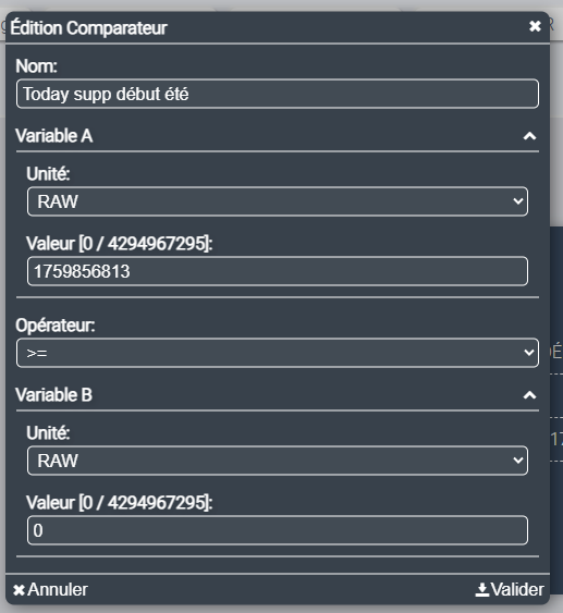Mon idée est de créer 2 comparateurs que je testerai ensuite pour déterminer si on est en été ou en hiver.