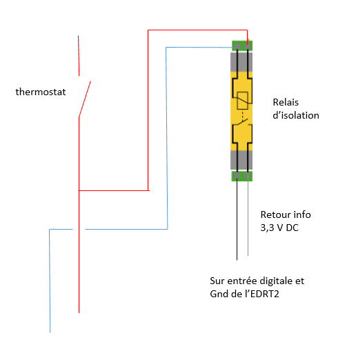 Avec une première difficulté, comment peut on récupérer le contact de demande de chauffe de mon thermostat sur l’EDRT2.