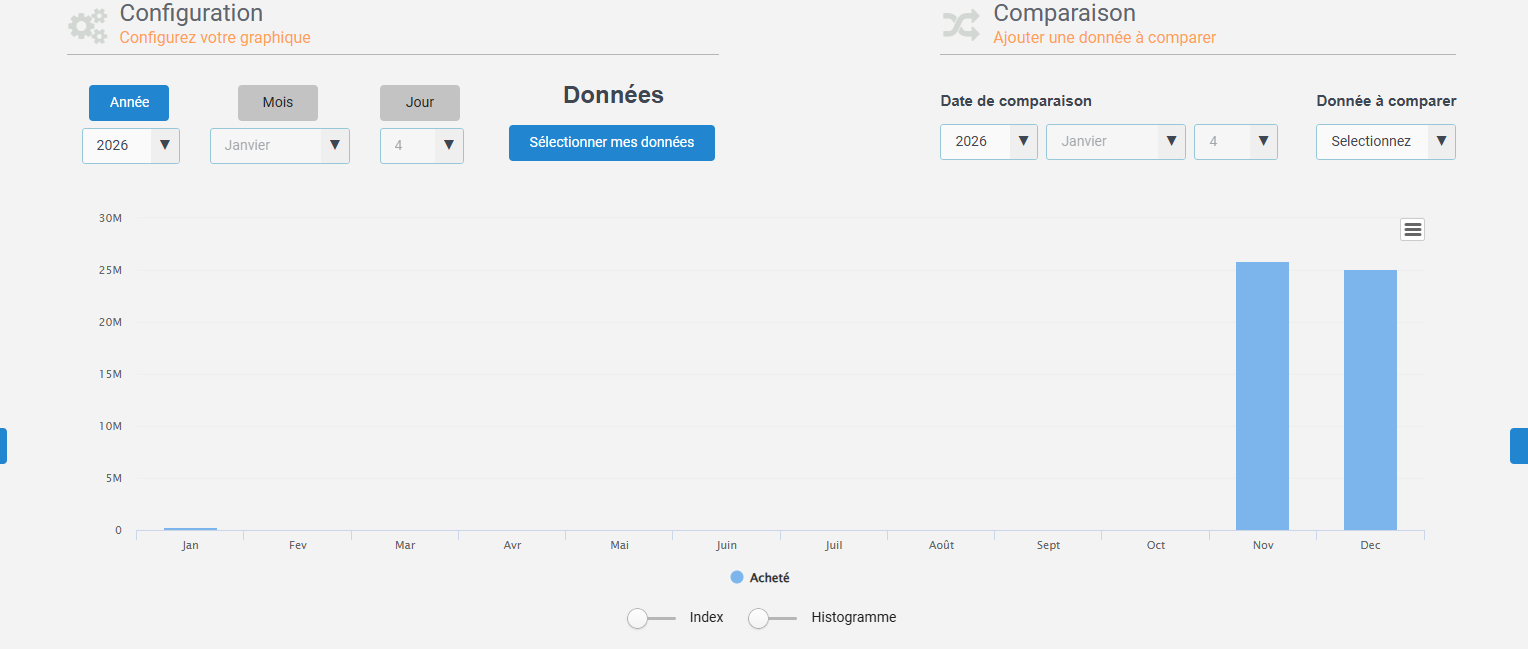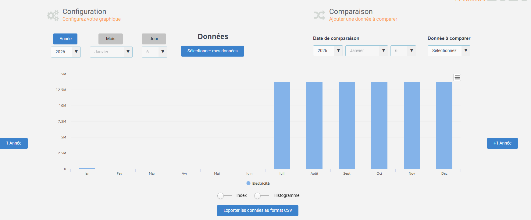 A la bascule sur 2026 mon RT2 a “inscrit” des données dans l’historique pour novembre et décembre 2026…..et en plus des valeurs de fou plus de 5000€ d’achat d’électricité pour chacun des 2 mois en question.