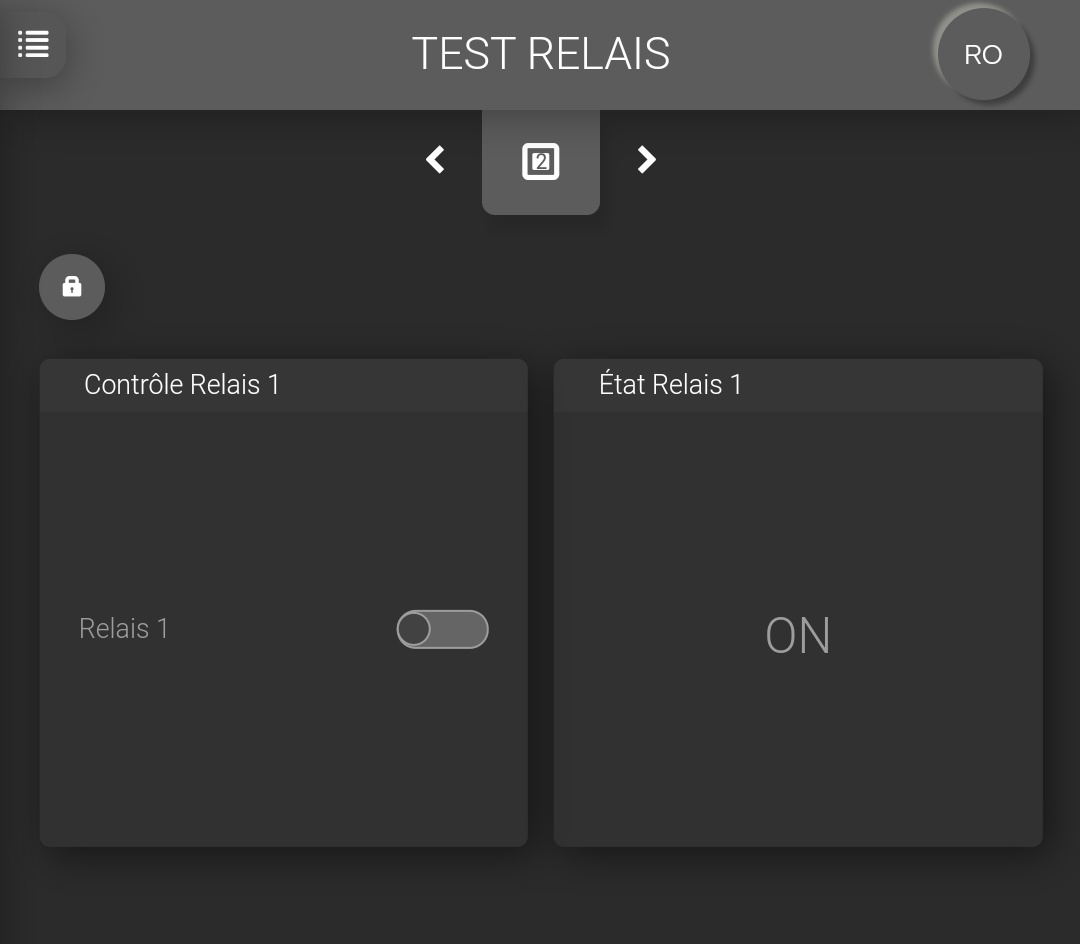 Ouverture du dashboard avec état du relais 1 = OFF