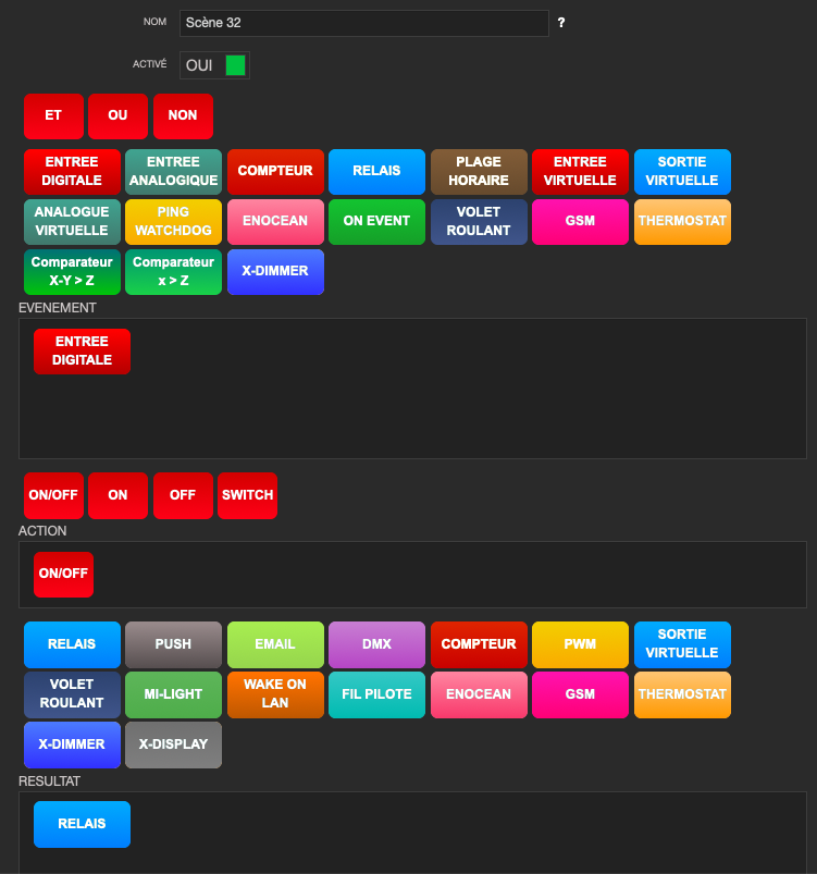 En fait je ne vais pas avoir besoin de scénari sophistiqués. Juste 20 circuits d’éclairage, commandés par boutons poussoir. Peut être des consignes chauffage par fil pilotes. Un relais dédié au portail. Et voilà. Je voudrai surtout qua ca marche en mode télérupteur pour l’éclairage sans avoir à programmer. Donc effectivement la X-8R est interessante. Une IPX800 V3 et 2 X-R8 pourrait faire l’affaire. La IPX-800 V3 a aussi un mode autonome télérupteur, comme les X-R8 ?