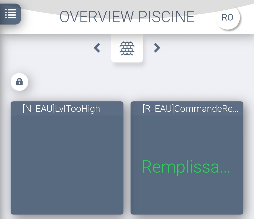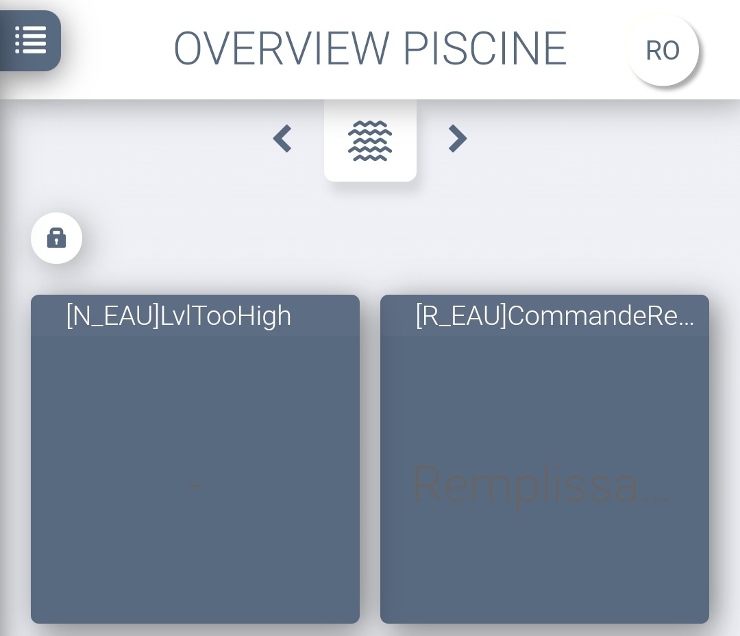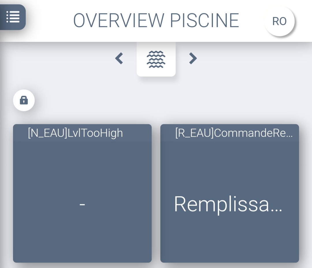 À l’arrivée sur le dashboard, les données sont en blanc. Après les avoir fait changer d’ètat, elles reprennent bien la représentation des variables IO. Avec des statuts ON (vert ou orange) ou gris pour le Off.