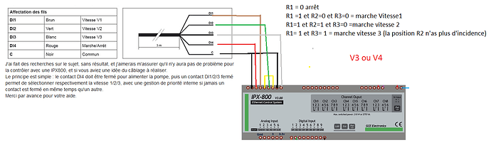 J’ai fait des recherches sur le sujet, sans résultat, et j’aimerais m’assurer qu’il n’y aura pas de problème pour la contrôler avec une IPX800, et si vous aviez une idée du câblage à réaliser.