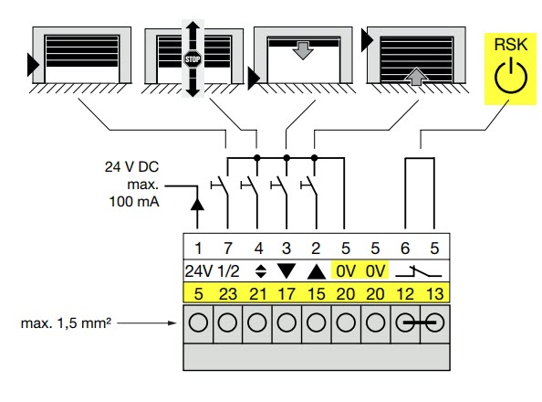 Bonjour, tout va dépendre du modèle de motorisation que vous utilisez…Supramatic ou Promatic de génération 3 ou 4?? En l’occurrence pour le modèle de génération 4, c’est l’interface UAP1HCP (réf 4514082) qui permet un pilotage par contacts secs. Bonne journée à vous.