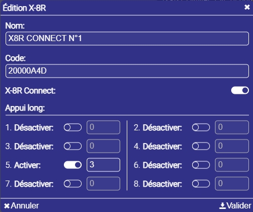Voici maintenant ma tentative pour que le scénario puisse se faire avec un BP physique. J’ai d’abord activé un appui long sur le X8R Connect