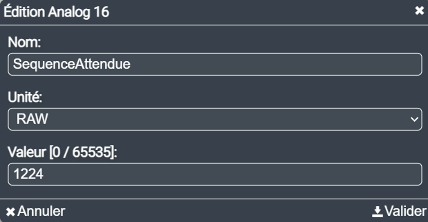 Changez la valeur de la variable monCodeId avec l’id de l’analogique virtuelle sequenceAttendue.