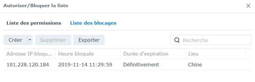 Vérifiez sur votre NAS si l’IP de l’IPX800 n’a pas été bloquée par la stratégie de sécurité.