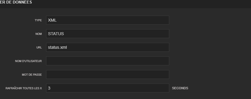 - il faut créer une source de données sur le dashboard. voir mes messages plus haut