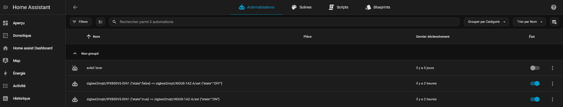 4. Création d’une automatisation pour transformer la valeur true en ON et false en OFF