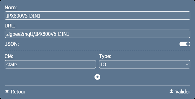 topic: zigbee2mqtt/IPX800V5-DIN1