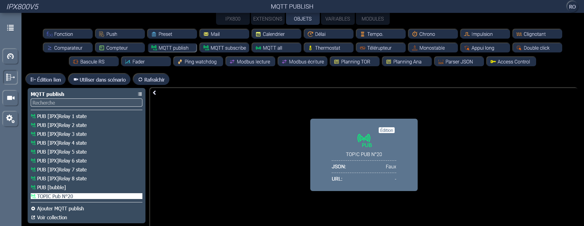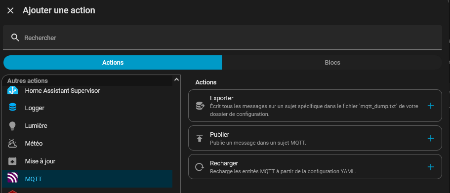 On sélectionne « MQTT » puis « Publier »