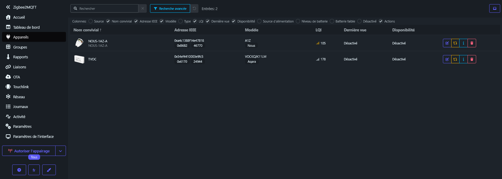 Maintenant il faut aller dans home assistant dans l’interface zigbee2MQTT
