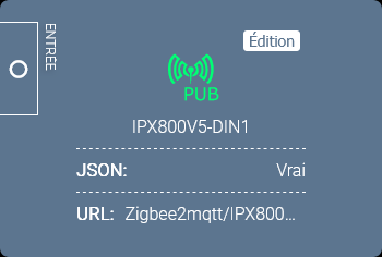 Donc maintenant à chaque changement d’état de l’entrée digitale cela enverra la valeur true ou false sur « zigbee2mqtt/IPX800V5-DIN1 »