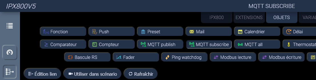 On peut selon les mêmes principes piloter n’importe quelle action sur Home Assistant et depuis Home Assistant envoyer un « publish MQTT » qu’on recevra sur l’IPX800V5 sur un MQTT"Suscribe"