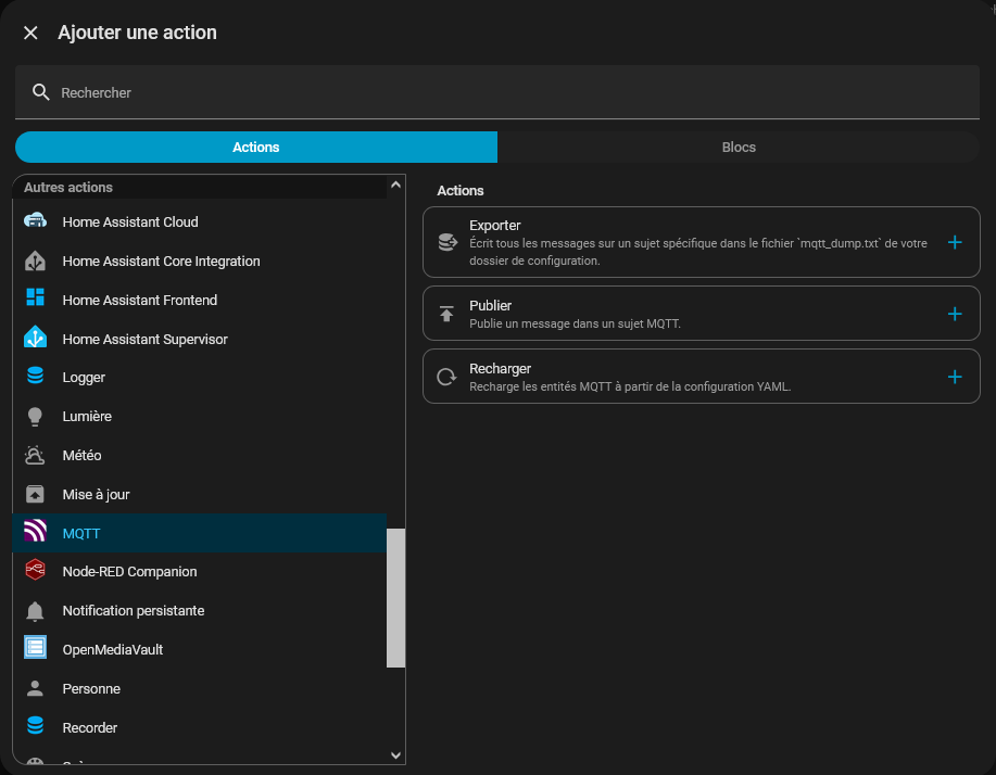 on choisit « MQTT » et « Publier »