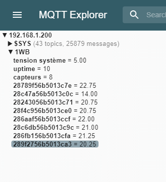 Il s’agit d’un arduino nano avec RJ45: il scanne les capteurs 18b20 qu’il a détecté lors de son démarrage puis publie toutes les heures vers MQTT.