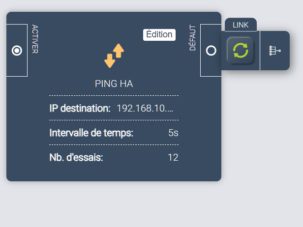 Je soupçonnais que l’IPX800v5 était capable de pinguer mais pas d’être pinguée d’où le relais NC que je pilote avec le module PING de Home Assistant mais je peux aussi l’actionner depuis le cloud avec l’app du tél.