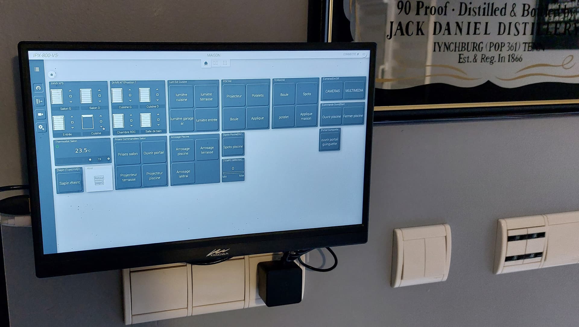 Depuis l’acquisition il il a quelques années déja d’un IPX800V4, je souhaitais avoir la possibilité d’avoir un écran positionné a un endroit stratégique ( la cuisine) permettant d’avoir en un coup d’oeil les états (portes et portails ouverts ou fermés, températures, etc) et de pouvoir piloter les différents éléments ( lumières, volets, portails, etc). J’avais débuté l’expérience avec impérihome sur une tablette, malheureusement, l’appli a disparu assez rapidement.