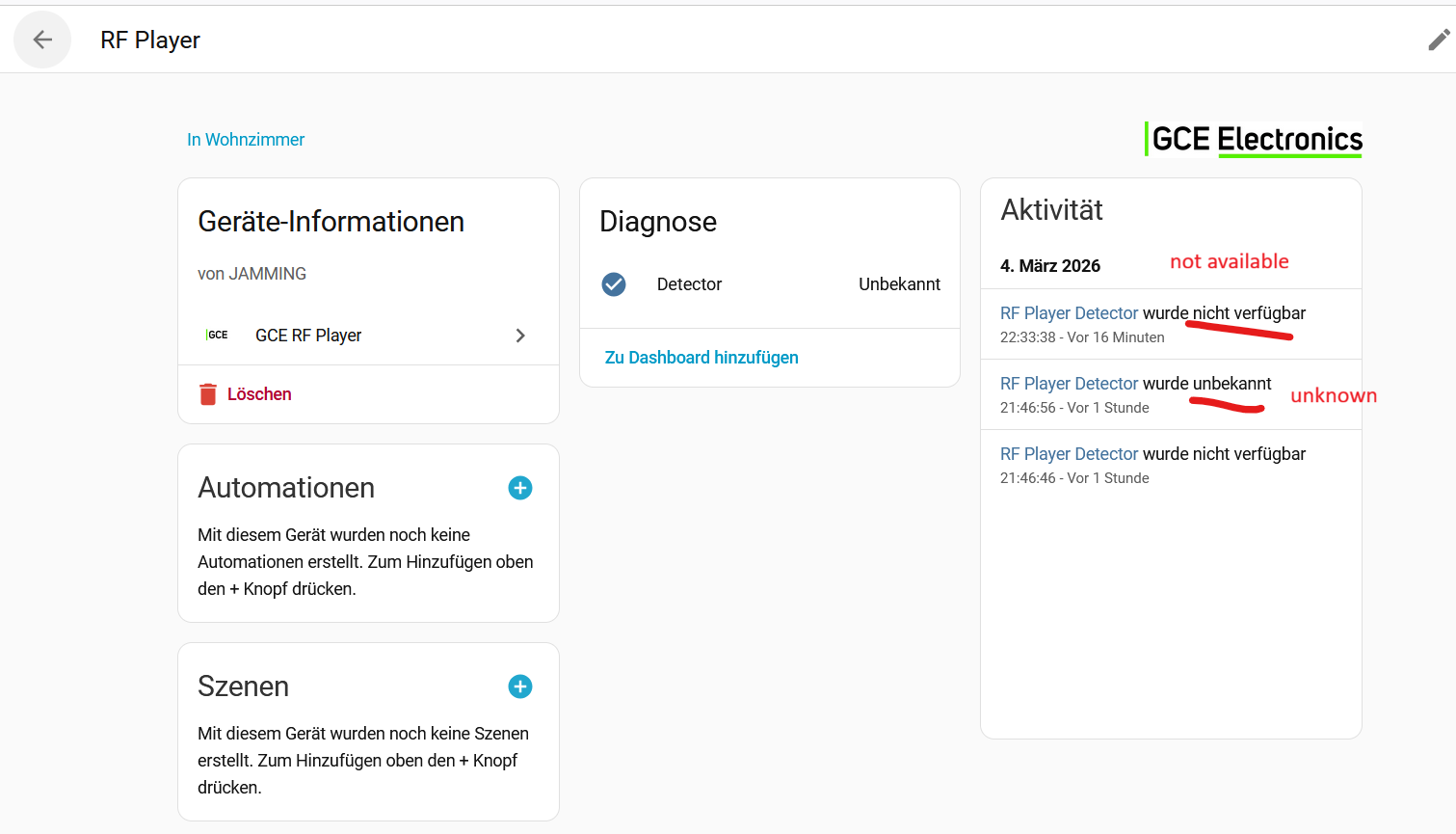 J’ai installé GCE RF Player via HACS et j’ai ajouté l’appareil dans Home Assistant. J’ai pu sélectionner le périphérique USB sans problème.