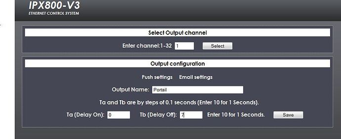 J’ai une paire en 9/10e qui va de la carte du portail (2 & 7 sur la carte Came ZM3) jusqu’à un poussoir supplémentaire sur le combiné d’interphone (à l’intérieur) qui fait bien la fonction d’ouverture et de fermeture ainsi que les télécommandes. Je viens de relier un contact de mon IPX800 en parallèle sur cette paire pour « domotiser » le portail et depuis, quand j’ouvre, le portail s’entrouvre et s’arrête (y compris mon poussoir et la télécommande qui fonctionnaient), alors j’ai augmenté le Tb du contact à 40, et là, l’ouverture par IPX800 se fait bien mais toujours pas sur mon poussoir et ma télécommande.