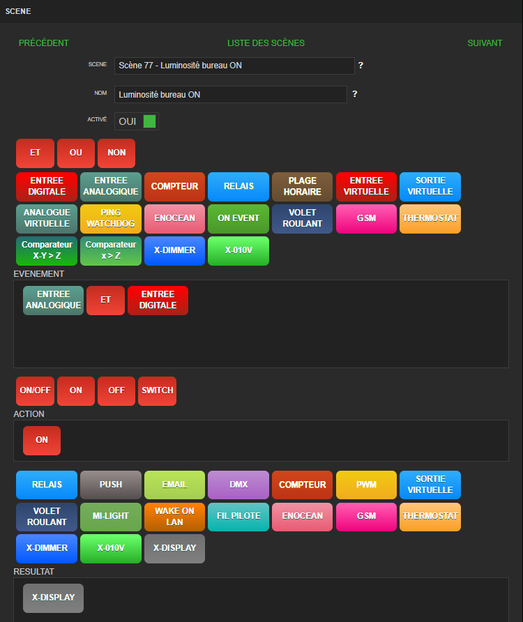 Oui, j’ai effectivement deux scénarios, un pour le ON de l’écran et un pour le OFF.