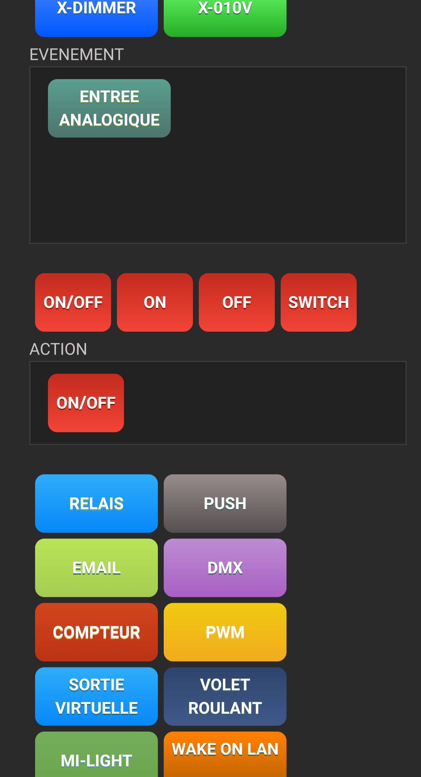 J’essaierai aussi en mettant ON/OFF et pas ON seulement pour l’action mais je pense que ceci n’a pas d’importance.