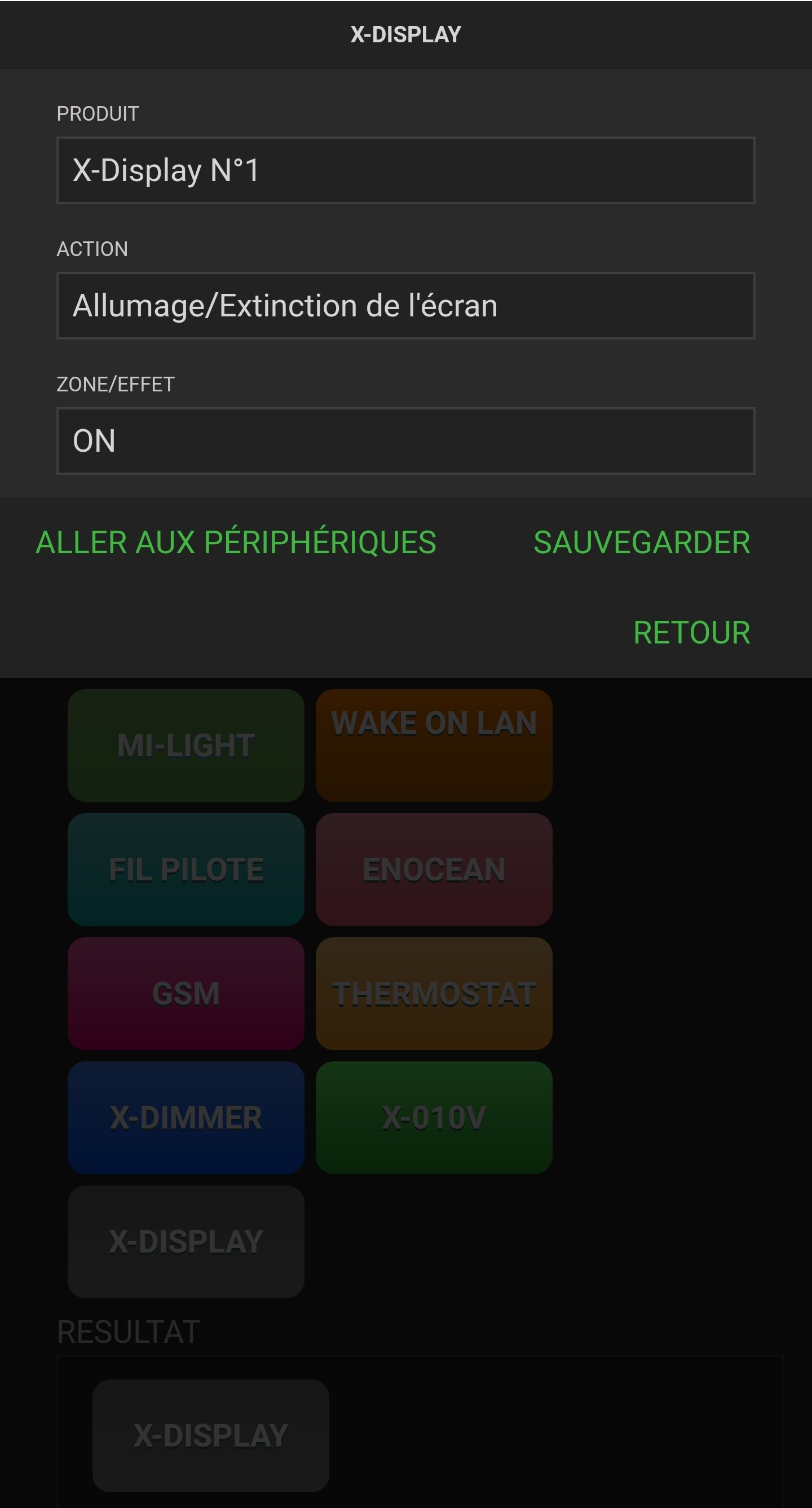 Il faut bien que l’auto-extinction du X-Display soit à NON et à 0. Cette fonction n’est pas compatible avec l’utilisation des scénarios.