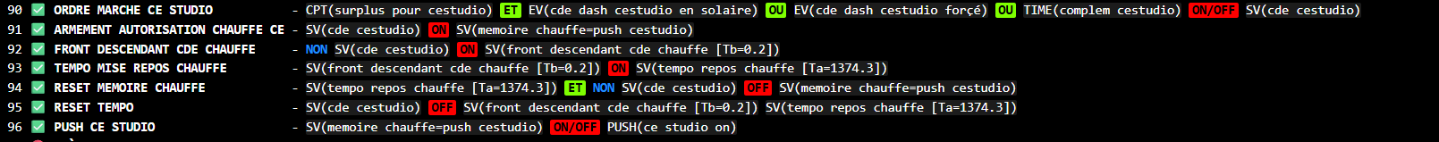 si SV1 = 1 alors la chauffe peut demarrer donc push CE