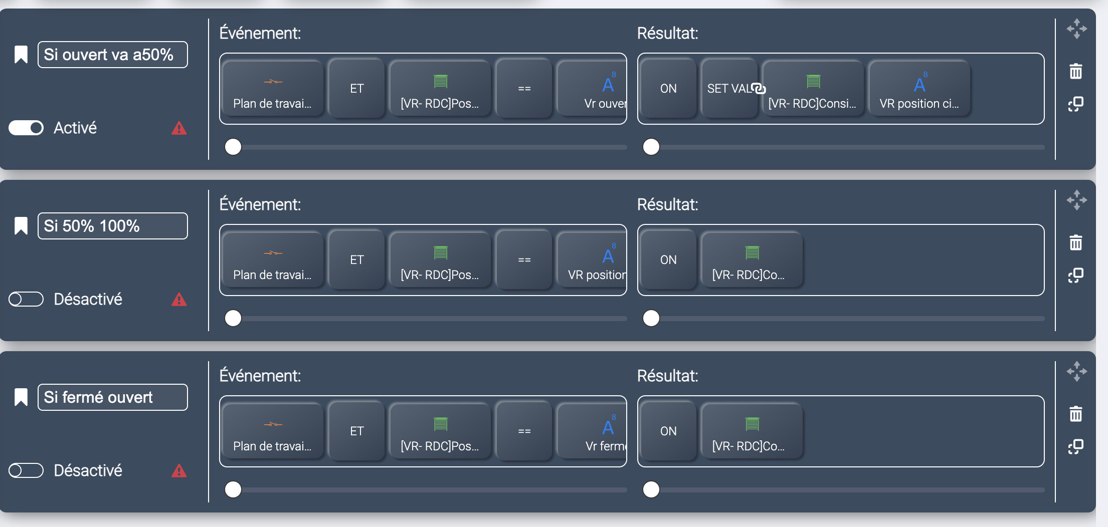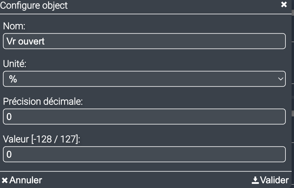 Je n’ai peut etre pas configuré la variable correctement pourtant j’avais faire remonté la valeur sur mon dashboard pour être sur que je mettais bien des valeurs cohérentes avec la position de mon volet.. j’ai changé l’unite en RAW mais ca n’a rien changé…