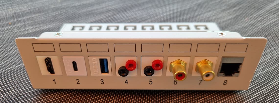 Afin de faciliter les connexions sur le NVR, conception dâun boitier avec modules Keystone qui permet de dĂ©porter la connectique principale situĂ©e sur la face arriĂšre.