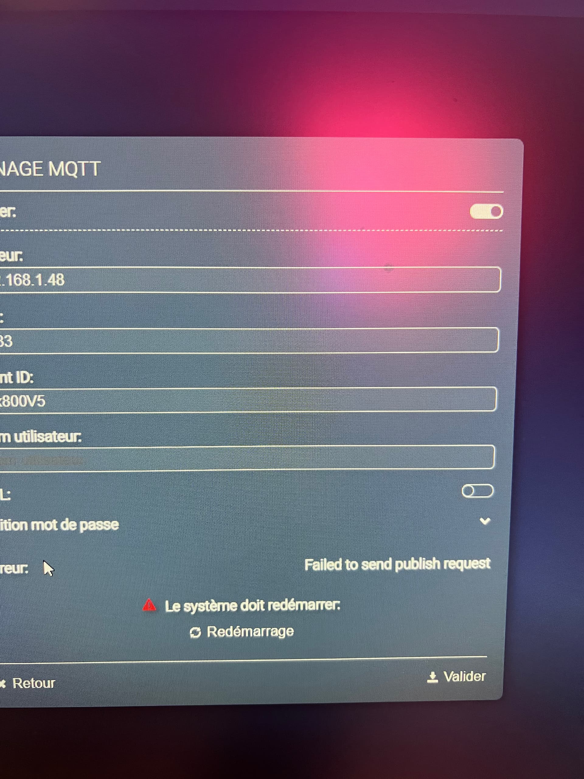 Avez vous essayé de désactivé mqtt et de le réactivé? refaire la procédure