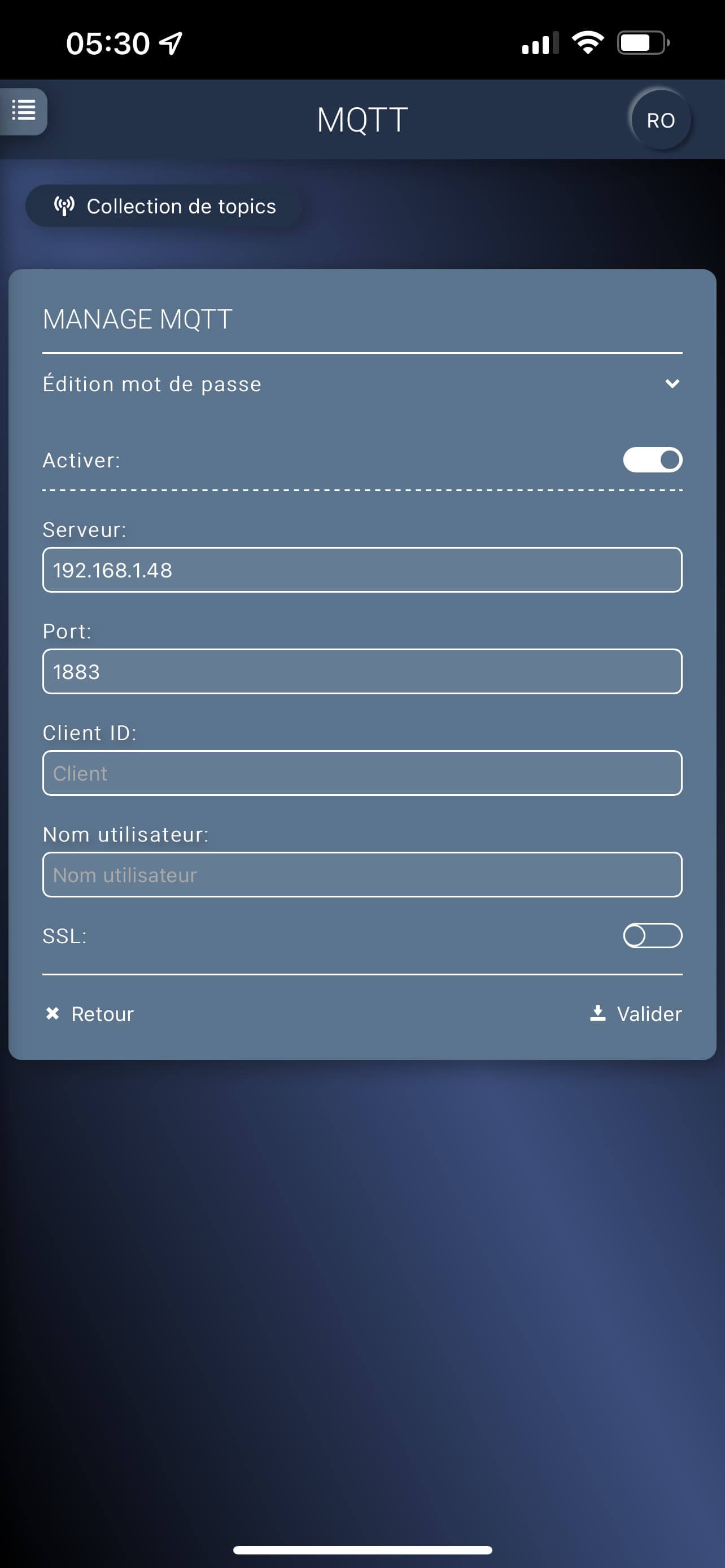 Si non alors alors éditez vos objets mqtt un à un et validez les…