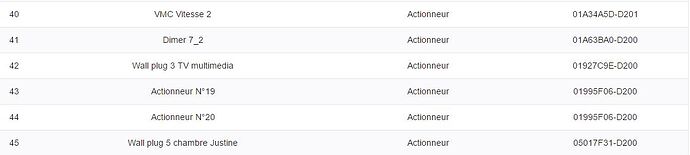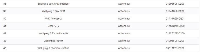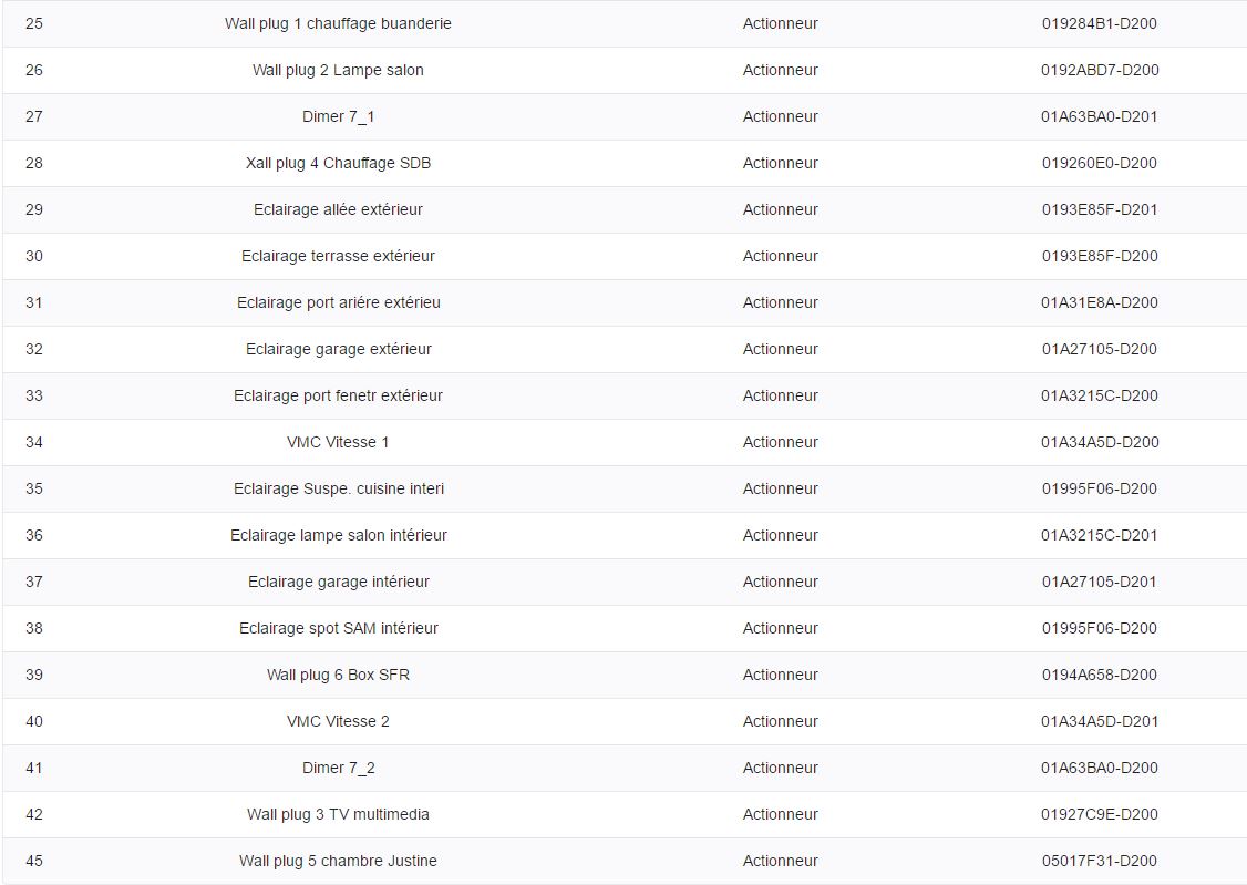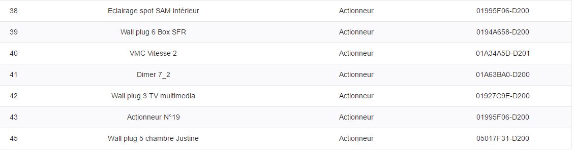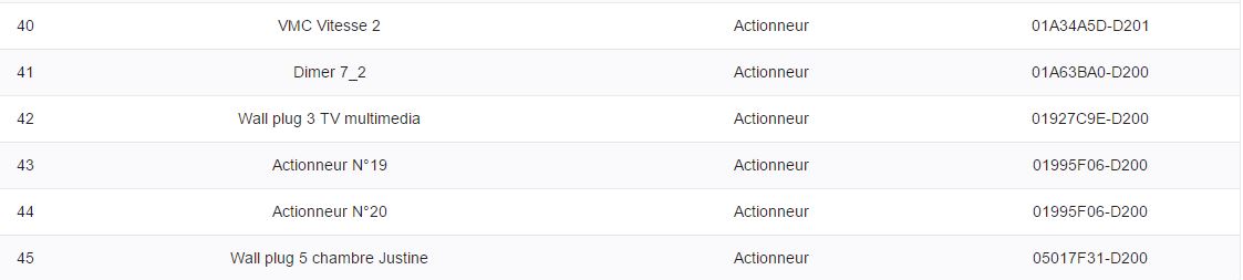 Alors du coup c’est normal. La position dans la mémoire est identifiée par l’ID à gauche. Les actionneurs commencent en 25; 25+19=44. Dans la liste on voit que vous avez des actionneurs de 25 à 43 puis en 45. Les nouveau actionneurs vont donc nécessairement se positionner en 44 (première position de libre), le « N°19 » n’est ensuite qu’un indicateur, un nom par défaut.