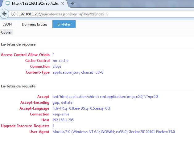 L’API a été corrigé en 2.00.30 et est donc théoriquement totalement fonctionnelle en 2.00.31 B5. A priori cette commande fonctionne tout le temps (je viens de la tester ici en tous cas) mais certains entêtes ont pu évoluer. Voici le début d’une réponse type :