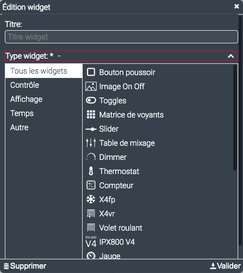 vous semblez ne pas avoir de V5. Voici la liste des widgets dispo :