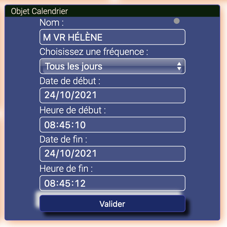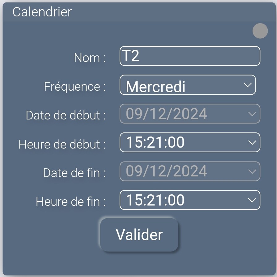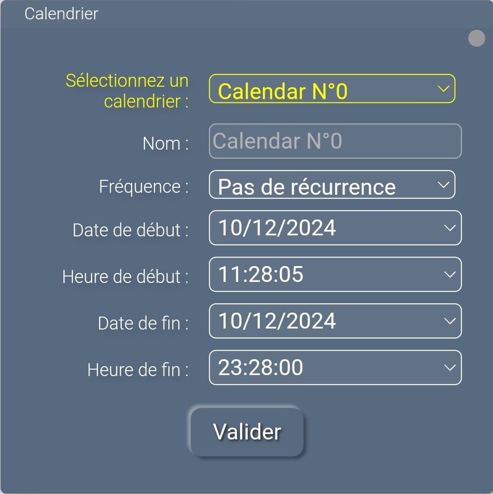 voici un widget permettant de modifier directement les attributs d’un objet Calendrier existant sur un Dashboard de l’IPX800 V5, sans aller en configuration de l’objet. Ce widget devra être installé sur un Dashboard, il n’est pas compatible avec le Liveview.