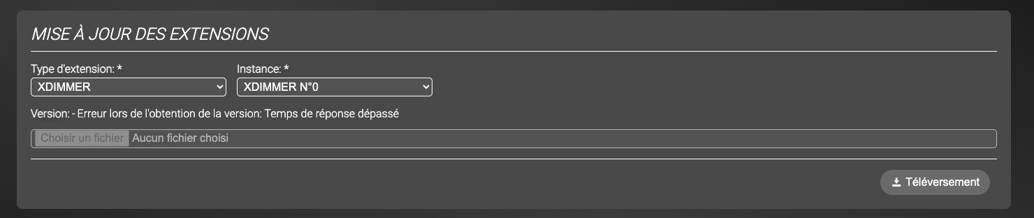 Je viens de brancher les deux que je viens de recevoir. Aucun problème de mon coté. Si je vais sur l’écran de mise à jour, l’IPX v5 détecte bien que mes X-Dimmer v2 sont en version 1.0. (edit: ah oui, j’avais mal lu votre dernier message, ça fonctionne maintenant.